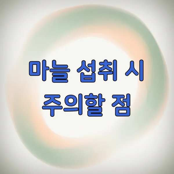마늘은 분명 건강에 많은 이점을 주지만, 몇 가지 주의할 점도 있어요. 위장이 약한 분들 은 날마늘을 많이 먹으면 속이 쓰리거나 더부룩함을 느낄 수 있습니다.