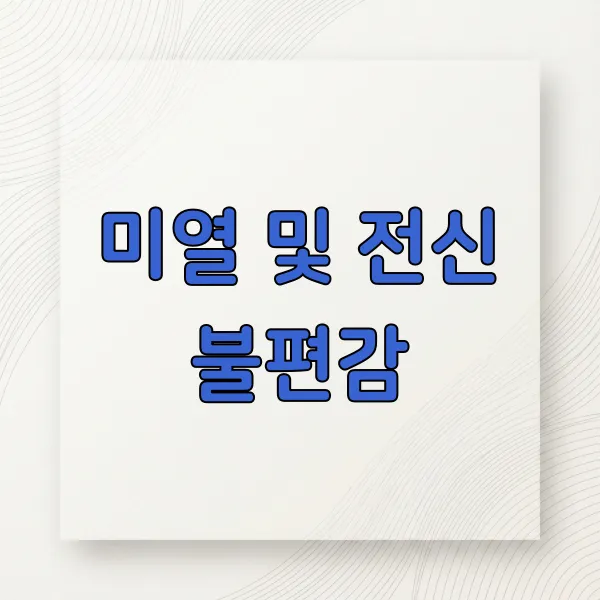 약간의 피로감을 느끼거나 전반적으로 몸이 으슬으슬 춥게 느껴질 수도 있습니다. 고열이 나는 경우는 드물지만, 컨디션이 좋지 않다는 것을 몸이 알리는 신호로 볼 수 있습니다.