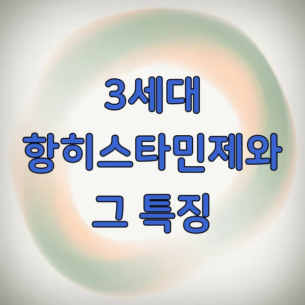 3세대 항히스타민제는 2세대 약물에서 한 단계 더 발전하여, 특정 이성질체만을 사용하여 약효를 높이고 부작용을 더욱 줄인 약물입니다. 이들은 특정 히스타민 수용체에 더 선택적으로 작용하도록 개발되어, 불필요한 부작용을 최소화하려는 노력이 담겨있어요.